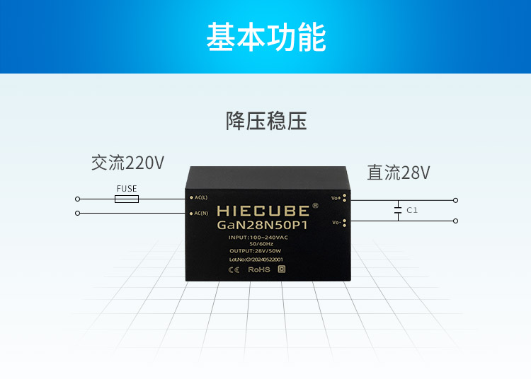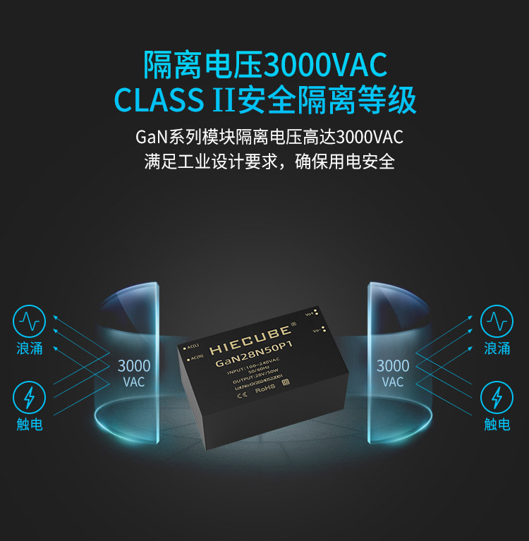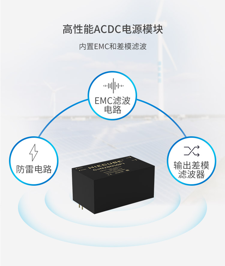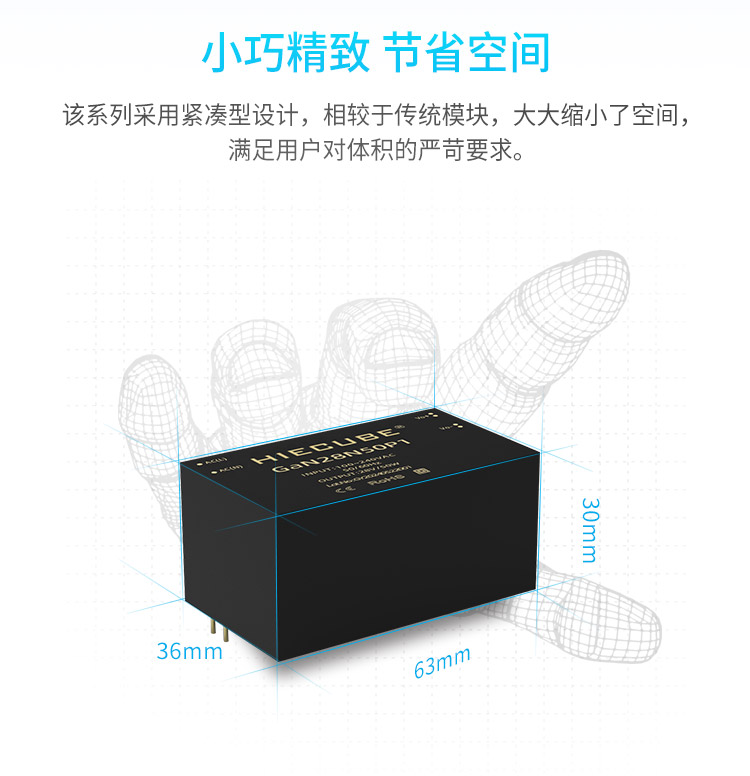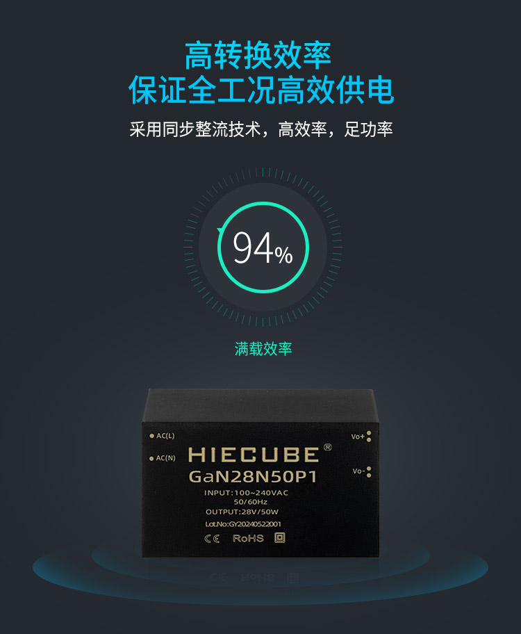 品牌:HIECUBE/高能立方 型号:GaN28N50P1 隔离耐压:3000VAC 输出电压精度:±1% 电源类别:AC-DC电源模块 模块质保年限:三年