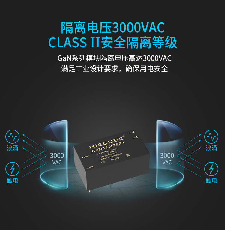 品牌:HIECUBE/高能立方 型号:GaN15N75P1 隔离耐压:3000VAC 输出电压精度:±1% 电源类别:AC-DC电源模块 模块质保年限:三年