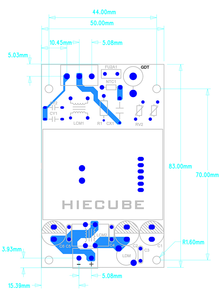 升级款demo板尺寸如下:增加了一个放电管和压敏电阻